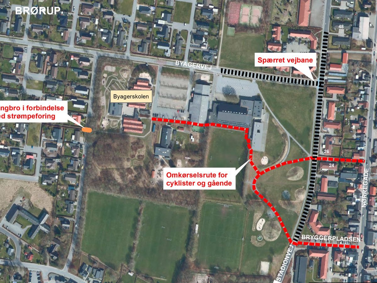 • Byagervej fra indkørsel til Brørup Hallerne til Stadionvej
